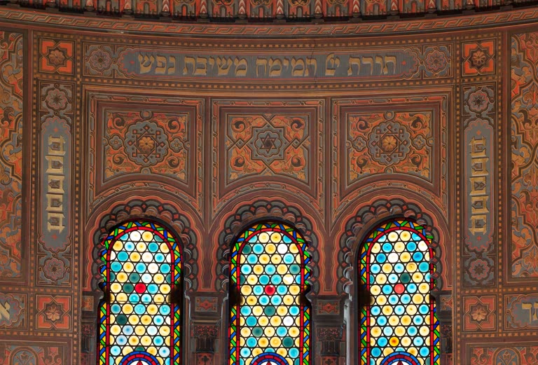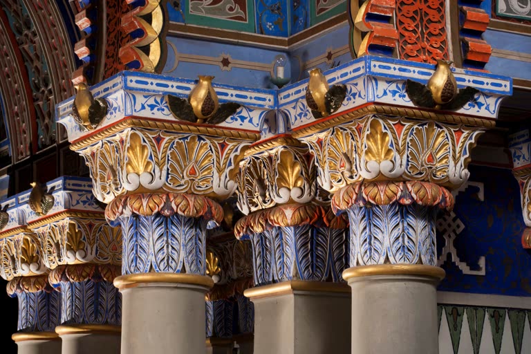 Florence, Synagogue, Windows of the apse. AKG6388579 © akg-images / Rabatti & Domingie Castello di Sammezzano. Corridoio delle Stalattiti (Corridor of Stalactites). AKG6114971 © akg-images / Rabatti & Domingie